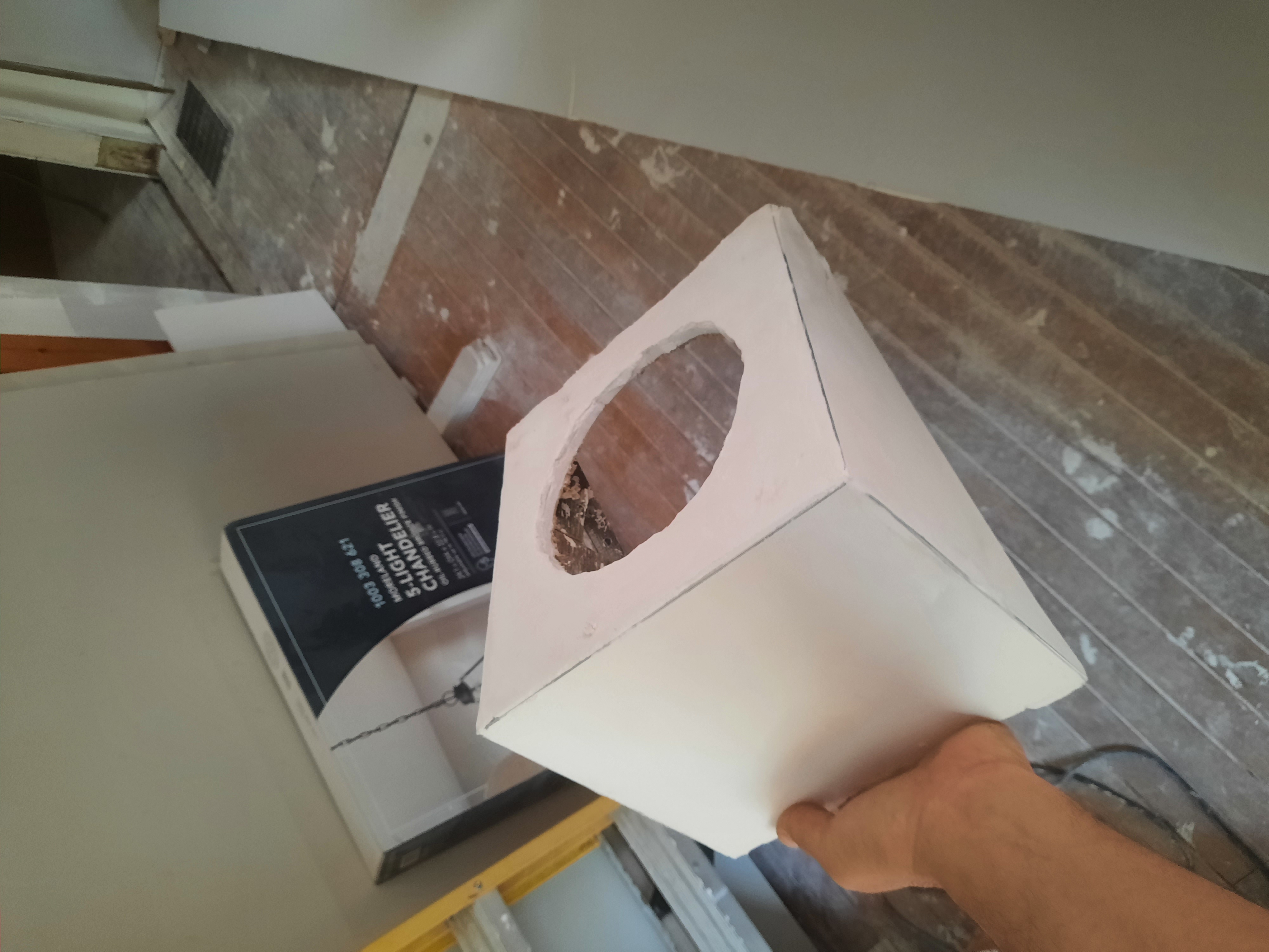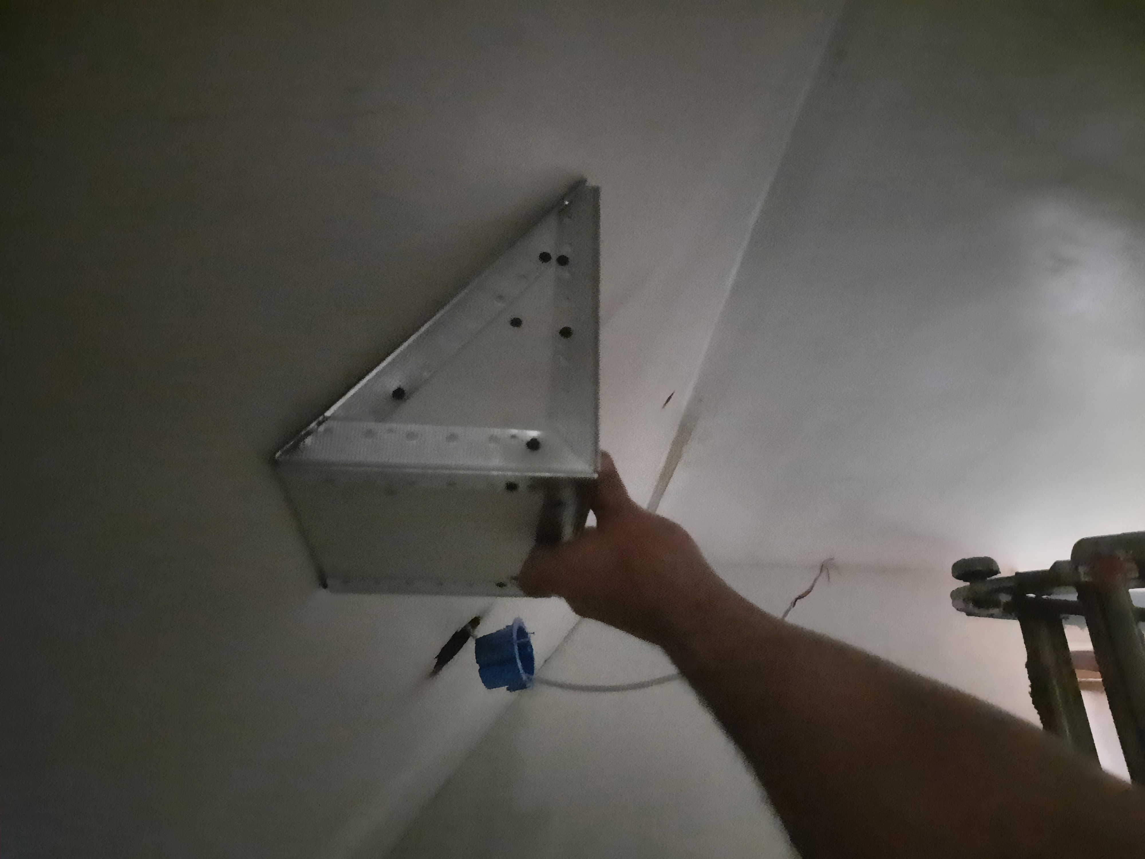 I came up with a way to make this thing that held a smart light. It had to be made at the perfect angle to an angled roof and 90° to the stairs.